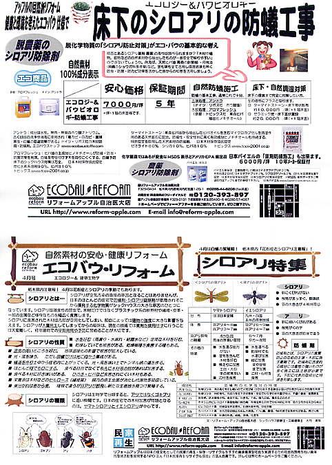 けを使用した「シロアリ防蟻工事」がおすすめです。「青森ヒバ100%天然成分」京都