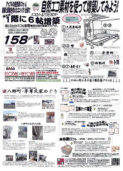 標準の増築プランでは床・壁・天井にはエコ建材を使用します。さらにオプションプラン