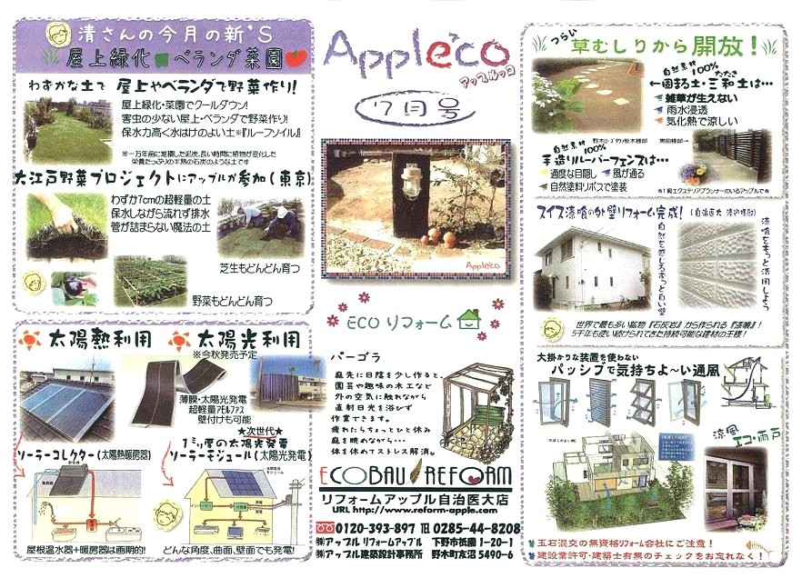 屋上・ベランダ緑化と野菜作り、雨水浸透するタタキ土間、漆喰の真白い外壁、