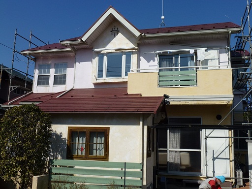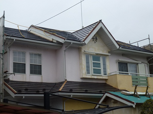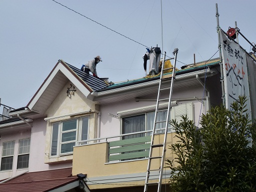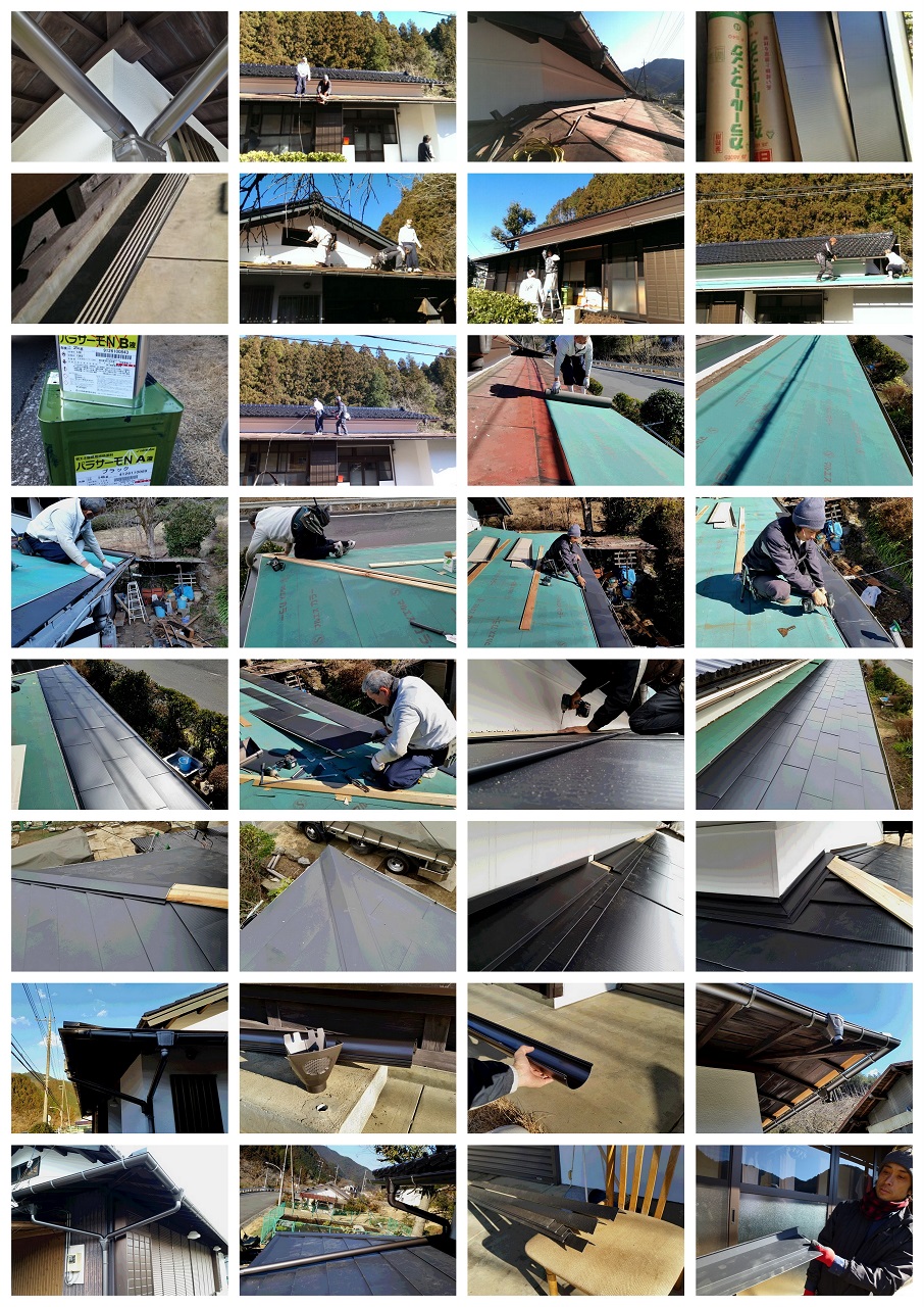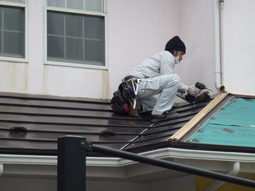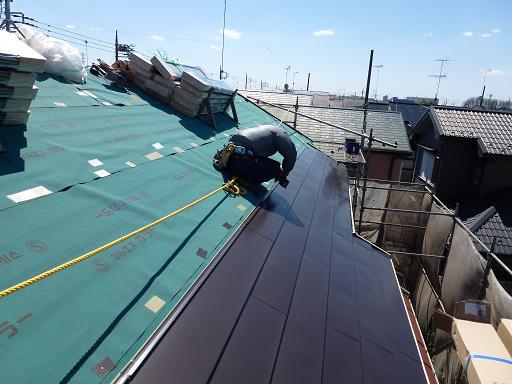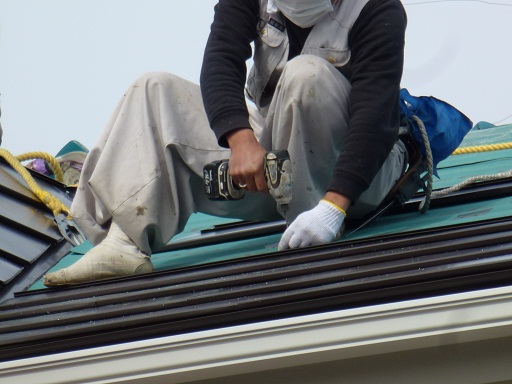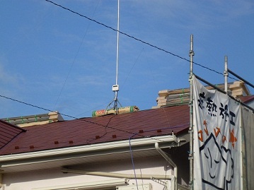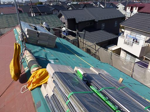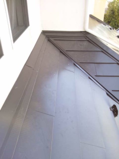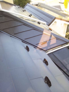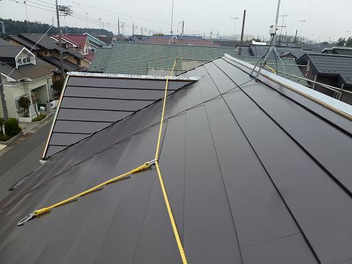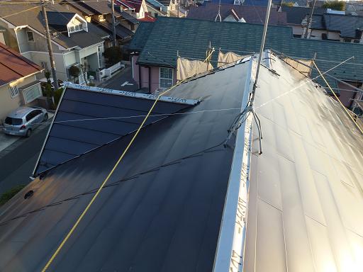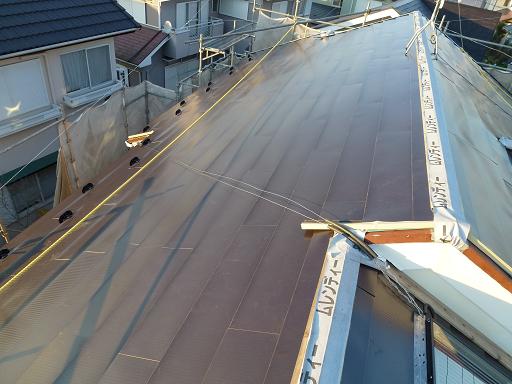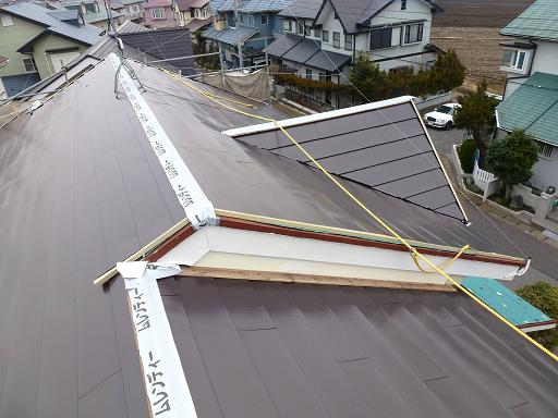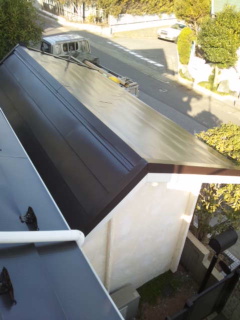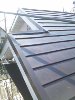 大屋根: 平部の施工完了、役物(コーナー部材)を最後に取ります