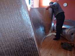 遮熱シート(空気層を挟んだ両面アルミ製)を隙間なく施工します