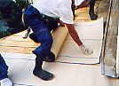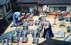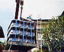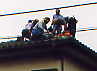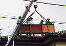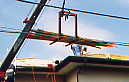 防水ルーフィング仕込みの後、屋根断熱・遮熱資材をクレーンで搬入