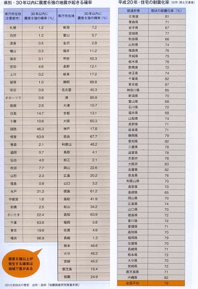 その後2011年の『国土交通省』『地震調査研究推進本部』2つの政府調査では、30年以内に震度6強の地震が起きる確率が示され、住宅の耐震化率は年々向上し東日本大震災後の2011年末現在では、全国平均79%の耐震化率となっている。生命と財産、そして安全と安心は銭金には代えられないことは事実となりつつある。