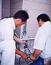 平成16年10月27日より被害を受けた建物の安全性をチェックする「応急危険度判定士」が県内外から自治体職員と共に派遣されました。「今回の地震は基礎・土台部分がしっかりしているかかが明暗を分けました。」つくば市建築指導課係長の宮久保正美さんは被災地建物をこう指摘して2日間にわたり約50棟の建物を調査しました。