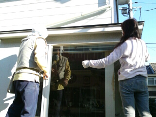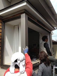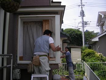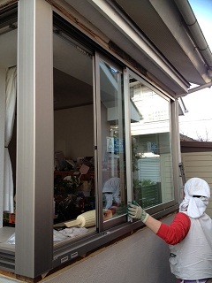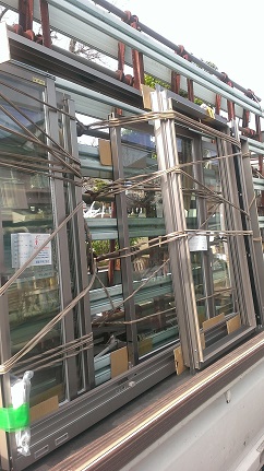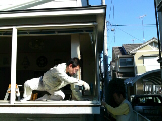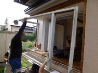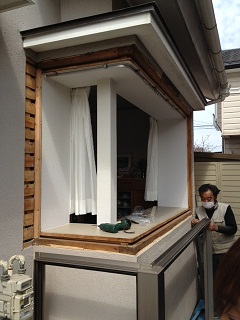 1.5間出窓⇒両側スライディング+中央FIX ドアに交換