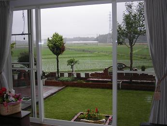 ―景観を遮り、通風しない南側(主庭)の出窓―