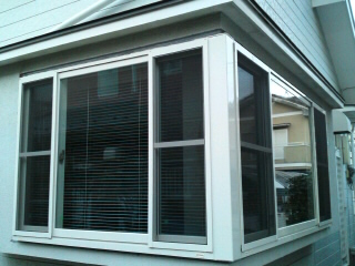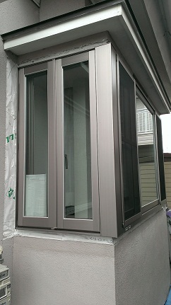1.5間コーナー出窓⇒3箇所スライディング+中央FIX窓 (Low-Eエコガラス)交換