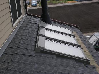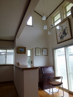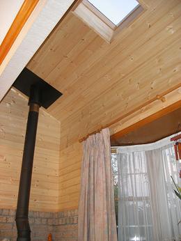 天窓3ケ所、内装:羽目板+タイル張り(薪ストーブ周り)