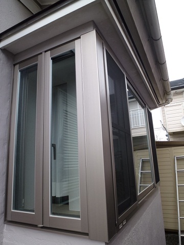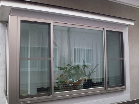 1.5間出窓X1.5間出窓⇒両側スライディング+中央FIX Low-E省エネエコガラス窓に交換
