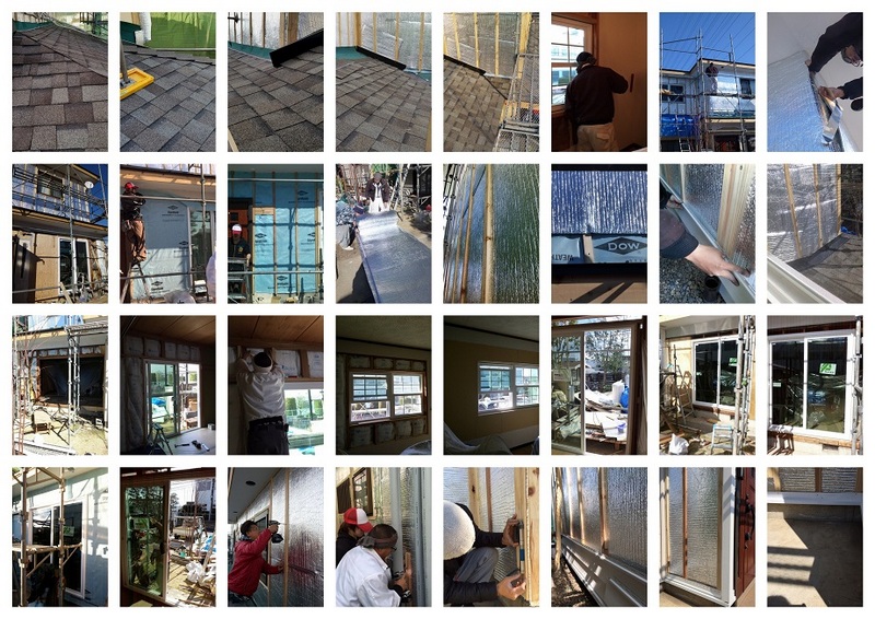 断熱・遮熱複層エコガラス取付け、外部雨仕舞とサイディング張り込み、ウレタン塗装