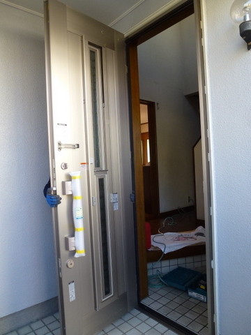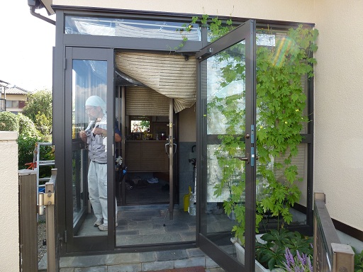Kの勝手口ドアはLow-Eペアガラス入り通風タイプに交換