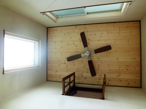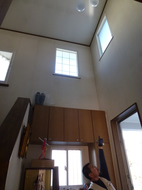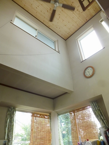 吹抜けDKには2階の洋室に木製サッシが付いていたが