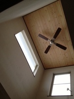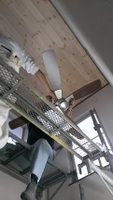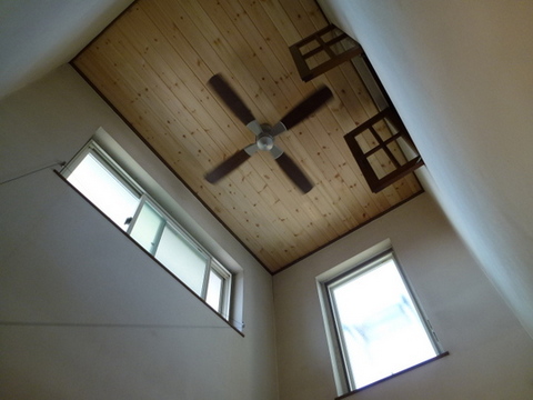 屋根は遮熱塗装を、天井側は遮熱シート張り羽目板仕上げ