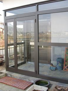 アルミ製風除室・後付け窓加工: 通風サッシ(5_透明ガラス)+網戸