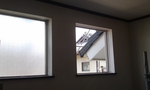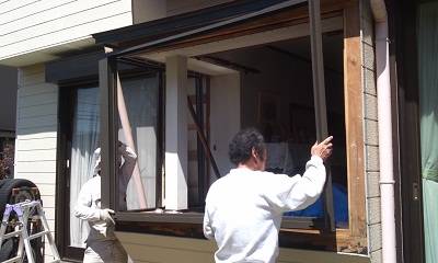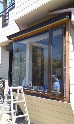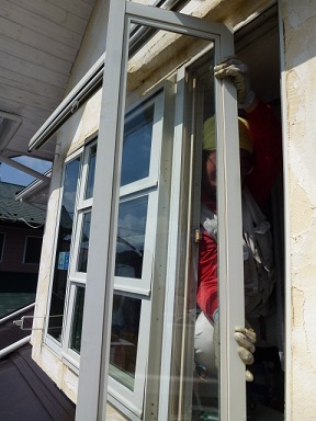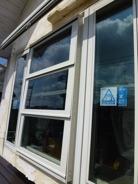 中央のFIX窓は、サッシ+ガラスごと全て交換