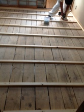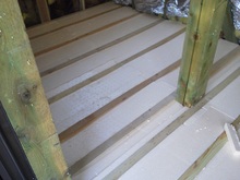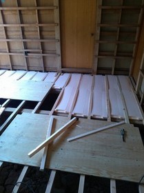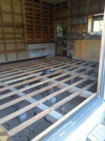 床下の束、根太を下げることで段差を解消