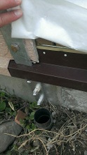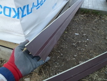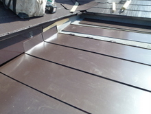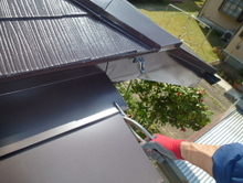 既存屋根に緩い勾配で下屋接合 板金で3重に接合部の雨仕舞い