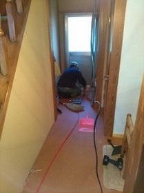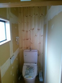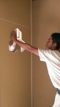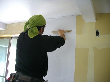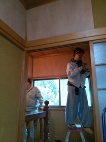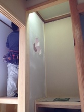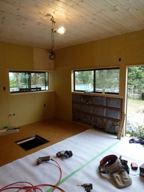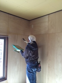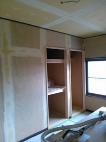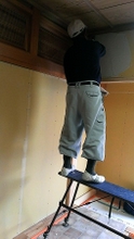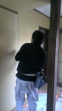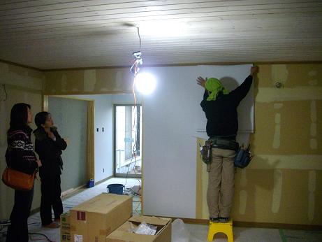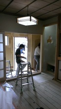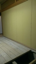 南側(中央)和室の床張り、玄関〜仏間の左官とウッドチップ・クロス内装工事