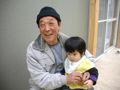 建前には施主様のお孫さんも参加 大工棟梁と.JPG)