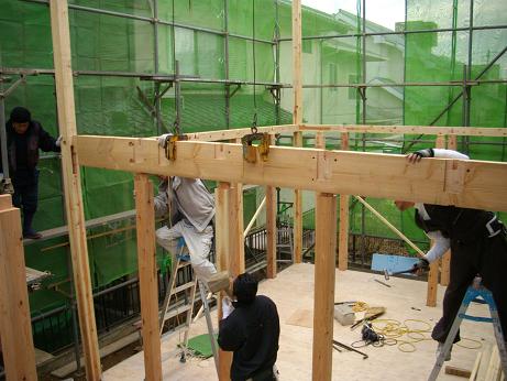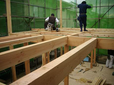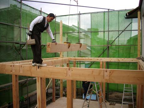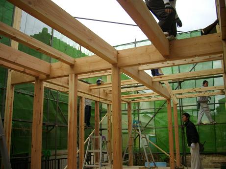 4名の大工で次々と組まれていきます.JPG)