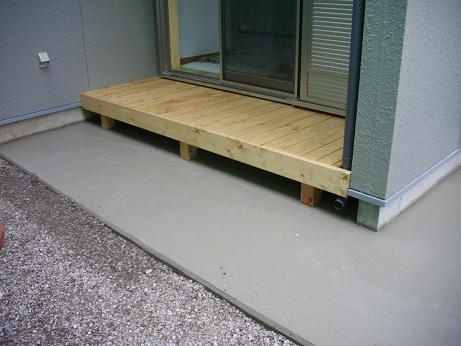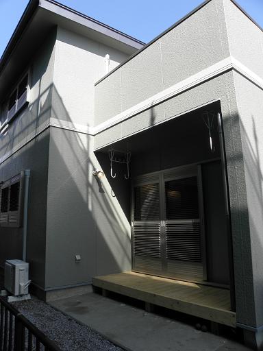 バルコニー下部:3尺の突き出し軒 物干金具が付き3尺の木製デッキも