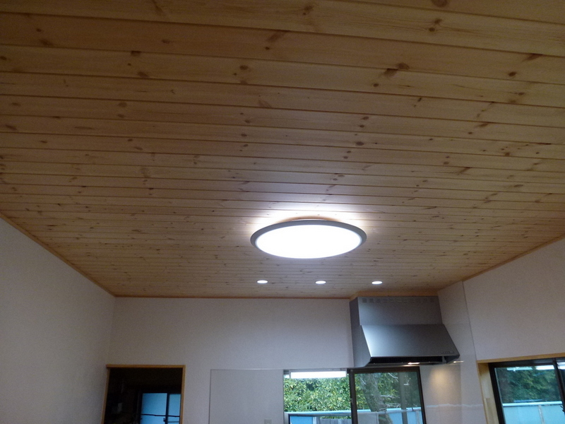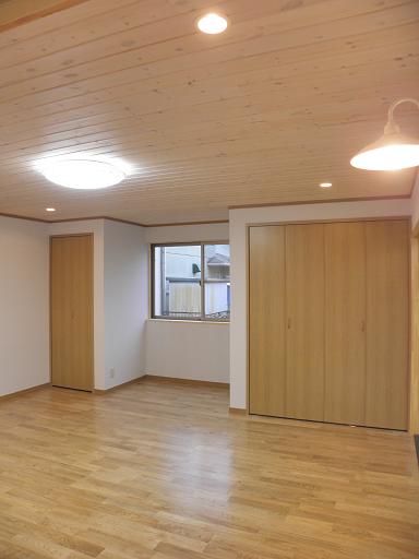 1階主寝室のみ天井は上のホワイトウッド(リボス仕上げ)羽目板仕上げ