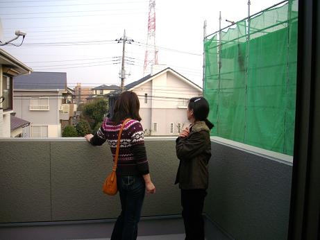 屋上ルーフバルコニーにて施主様と弊社の従業員