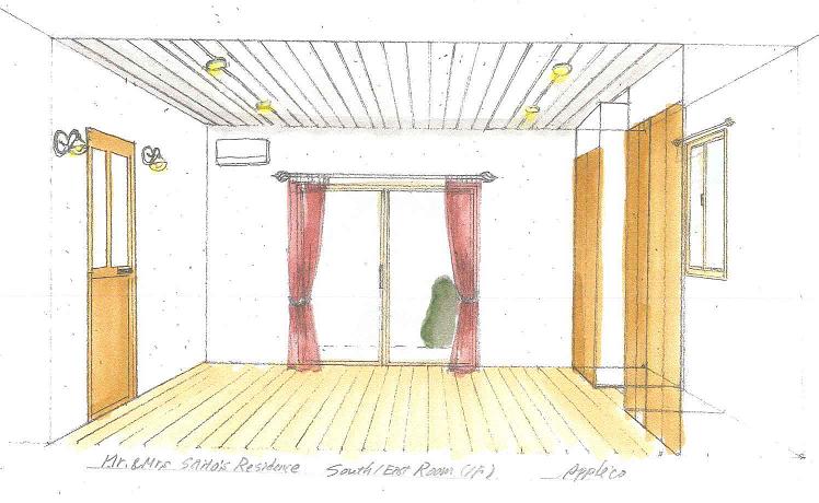 手描きパース例: 1階(主寝室)の内装