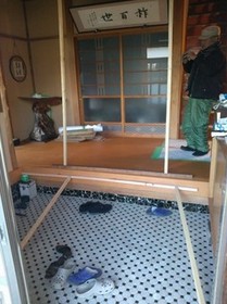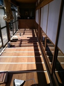 南側(中央)和室の床工事、仏間木製建具工事