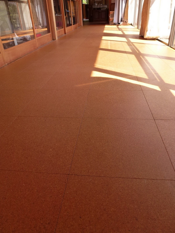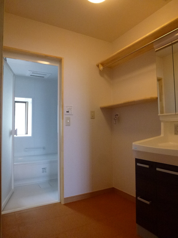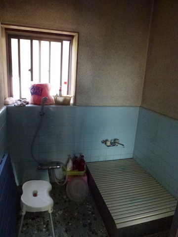 1階の増改築: 内装に自然素材の居室(母)+物干しテラス(土間)
