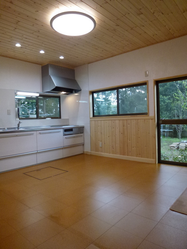 内装:楢無垢板、天井壁ウッドチップクロス