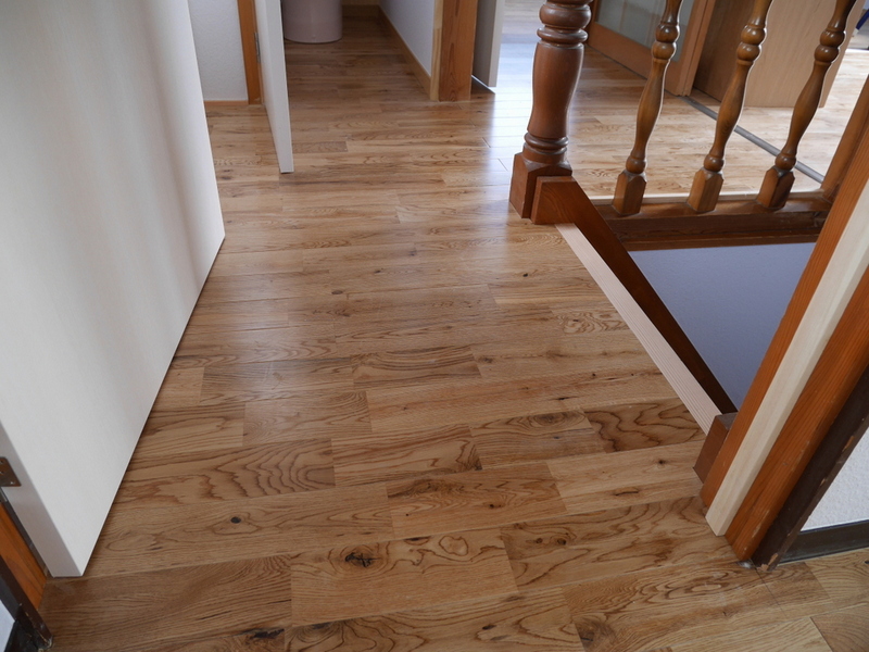 内装は楢無垢床板、ウッドチップクロス