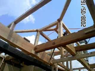 2階屋根。半分以上解体し構造を造り直した。