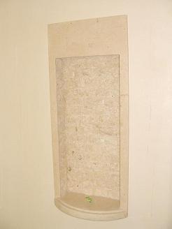 居間壁:壁厚ニッチ収納に沖縄サンゴ石↑ |
