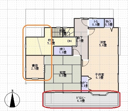 既存書斎+吹抜け=ウォークイン・クローゼット