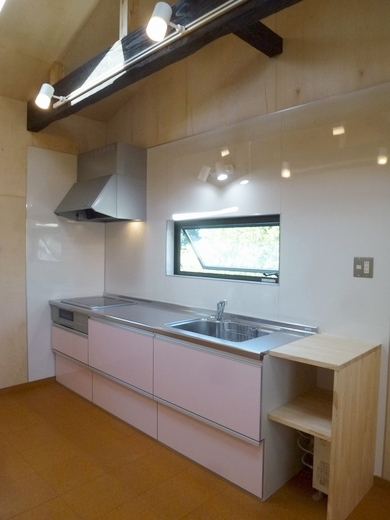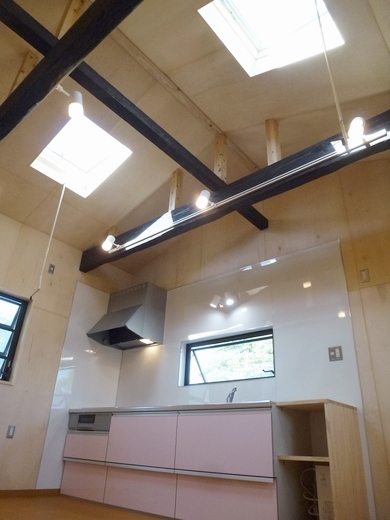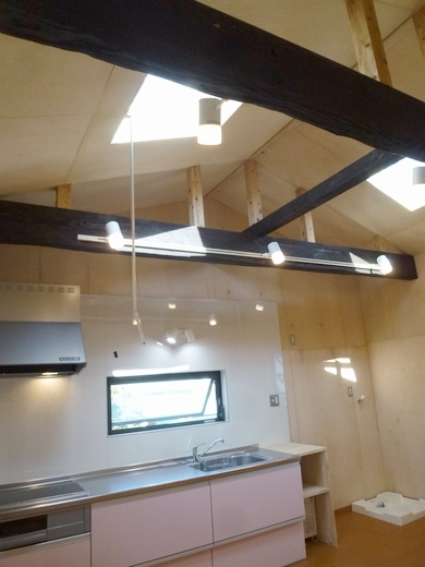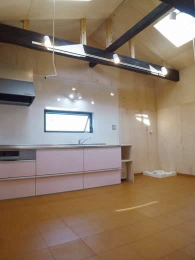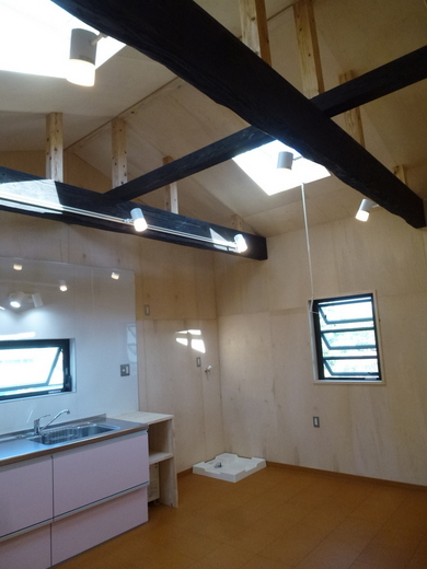 南北の天窓・幅広のキッチン・電気式給湯器・洗濯機置場