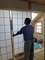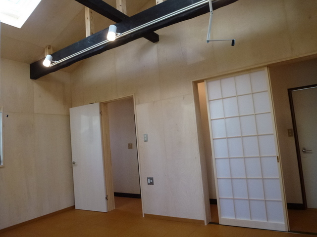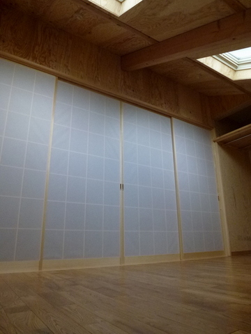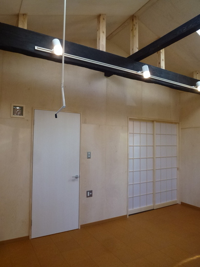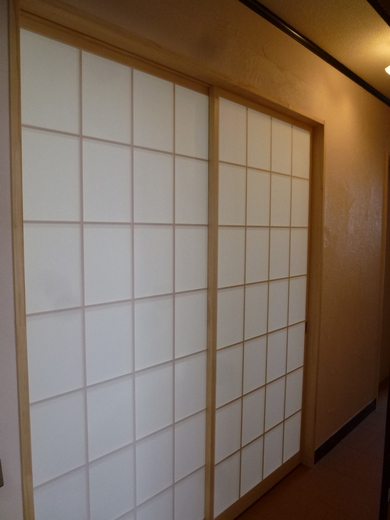 間仕切りの障子が薄暗く物置と化し