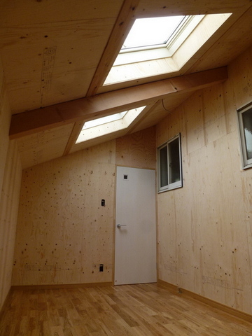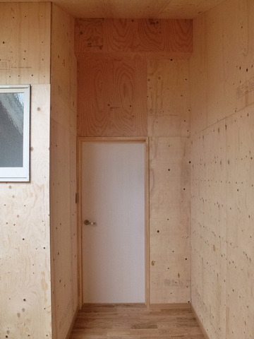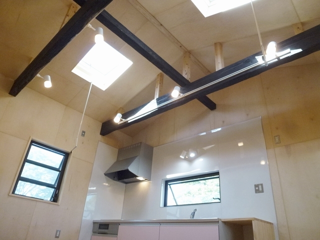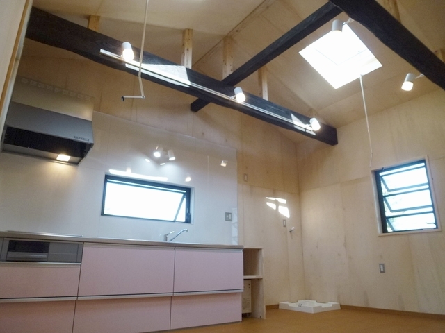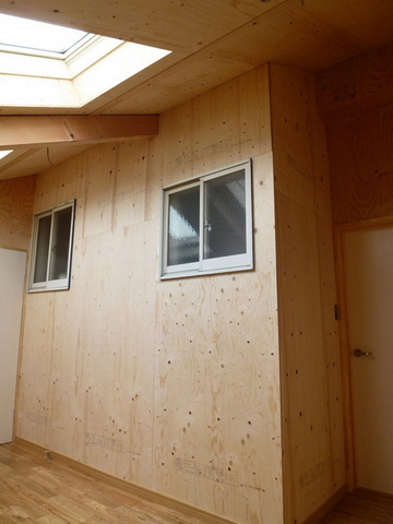 予算を押さえるためLDK増築部の内装仕上げは針葉樹合板