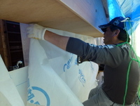 屋根下の断熱材充填+遮熱シート張りにより温熱環境改善