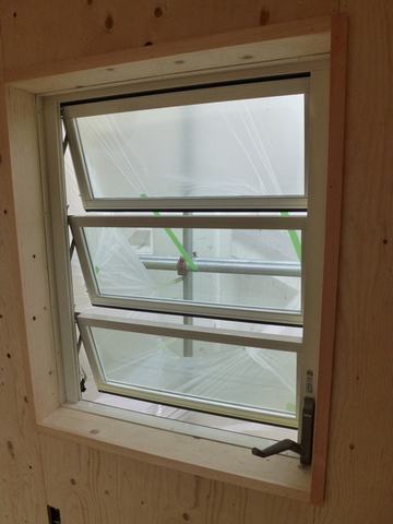 2部屋に壁面のルーバーサッシ⇒天井の2連天窓へ自然換気